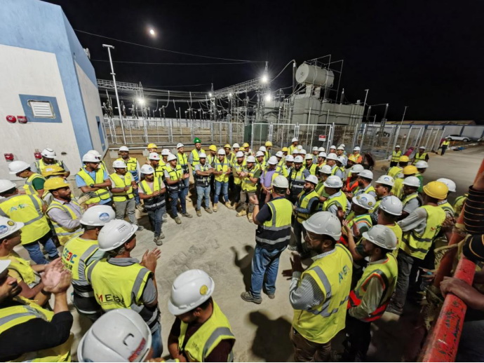 為確保倒送電工作順利完成,項目部科學(xué)組織、精心策劃,積極協(xié)調(diào)業(yè)主方、民防局和埃及電網(wǎng)公司等相關(guān)單位,按照時序計劃,逐步驗收,特別是在倒送電開始前,對相關(guān)部門專業(yè)人員進(jìn)行全面的安全與技術(shù)交底,嚴(yán)格執(zhí)行倒送電調(diào)試措施。在項目業(yè)主和埃及電網(wǎng)公司相關(guān)負(fù)責(zé)人的見證下,整個受電過程順利、可控且受電后各系統(tǒng)設(shè)備運行正常,參數(shù)準(zhǔn)確無誤。