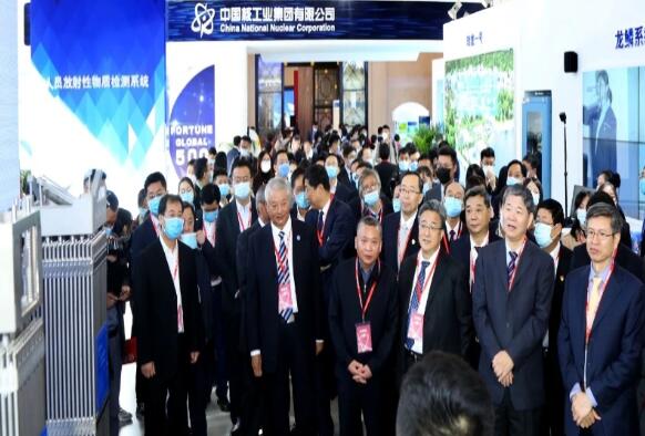 工業(yè)和信息化部副部長、國家原子能機構(gòu)主任張克儉,生態(tài)環(huán)境部副部長、國家核安全局局長劉華,中國科協(xié)書記處書記宋軍,國家能源局副局長劉寶華,國家知識產(chǎn)權(quán)局副局長周暉國,全國政協(xié)常委、中國核學(xué)會理事會理事長王壽君,全國政協(xié)常委穆占英,中核集團(tuán)董事長余劍鋒,中國科學(xué)院院士詹文龍,中國工程院院士歐陽曉平,中核集團(tuán)副總經(jīng)理申彥鋒、總工程師雷增光以及來自英國、法國等十余個國家的政府官員和專家出席開幕式,并參觀了中核集團(tuán)展臺。