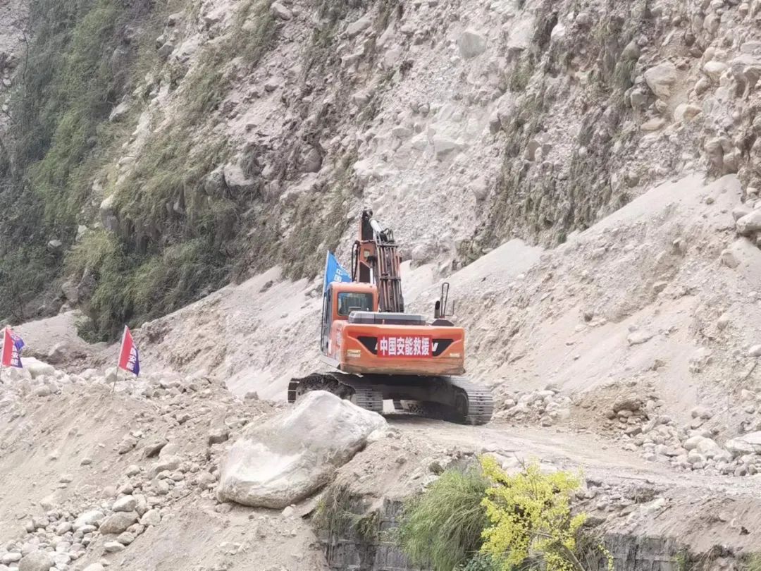 在瀘定縣至磨西鎮(zhèn)道路搶通段,中國安能搶通分隊30人,6臺套裝備爭分奪秒進行排險搶通作業(yè),工程測量人員運用專業(yè)儀器實時對山體進行監(jiān)測。由于塌方量較大,有很多大塊石的處置增加了施工難度,同時面臨余震導(dǎo)致再次山體滑坡和落石的危險,非??简灢僮魇值膶I(yè)技術(shù)水平和心理素質(zhì)。排險過程中,為確保安全高效,搶險分隊把指揮員、操作手、測量員配置成多個小組輪番不停歇地進行作業(yè)。9月6日13時40分,經(jīng)過23小時晝夜奮戰(zhàn),瀘定縣至磨西鎮(zhèn)道路完成搶通,實現(xiàn)雙向通車,救援人員、車輛、物資正源源不斷運向災(zāi)區(qū)。