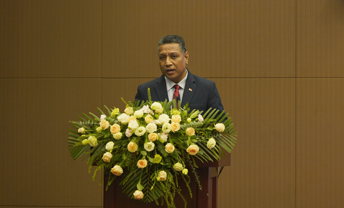 錢智民指出,為積極應對全球氣候變化帶來的挑戰(zhàn),中國提出“3060”雙碳目標,致力于和全球一道向低碳和零碳社會發(fā)展。國家電投緊緊圍繞中國“3060”雙碳目標,加快建設(shè)具有全球競爭力的世界一流清潔能源企業(yè)。目前裝機總規(guī)模超過2億千瓦,清潔能源發(fā)電裝機超過1.2億千瓦,境外投資運營總裝機達到765萬千瓦,在綠色低碳發(fā)展上取得了顯著成效。太平洋島國具有豐富的可再生能源稟賦,國家電投愿與各方探討在能源規(guī)劃與咨詢、清潔能源技術(shù)培訓、清潔能源項目開發(fā)等領(lǐng)域的合作,努力打造中國和太平洋島國能源合作典范。