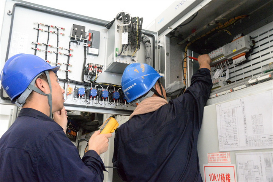 國(guó)網(wǎng)保定供電公司員工在110千伏塔上變電站開(kāi)展10千伏開(kāi)關(guān)柜控制電纜絕緣試驗(yàn)。
