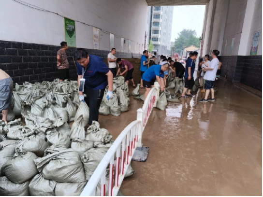 二勘局華誼物業(yè)公司黨總支搶險救援突擊隊為在京涿各住宅項目部關(guān)鍵部位配備防汛沙袋700余個,最大限度降低洪災(zāi)造成的危害;冒雨為北京?;奂卧沸^(qū)抽排積水、搶修自來水供水管道。