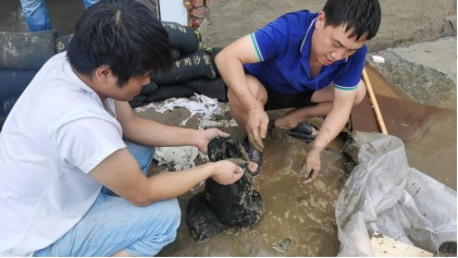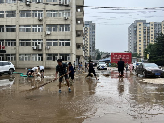 物探院黨員突擊隊、志愿隊及工會、團(tuán)委志愿者及時對辦公區(qū)域進(jìn)行淤泥清理和消殺,檢驗電力設(shè)備,有序做好災(zāi)后重建,加速恢復(fù)生產(chǎn)工作正常秩序。