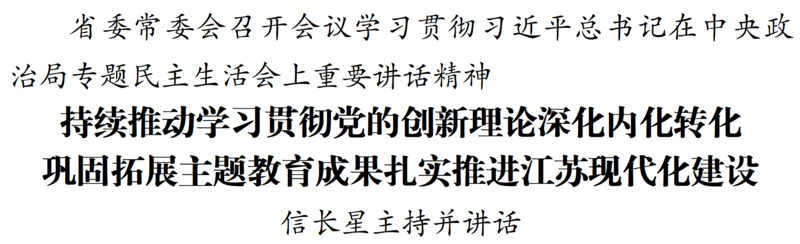 1月8日,江蘇省委常委會召開會議,深入學(xué)習(xí)領(lǐng)會習(xí)近平總書記在中央政治局專題民主生活會上的重要講話和中央通報精神,認真對照檢查,明確改進方向。省委書記信長星主持會議并講話。省委常委同志交流學(xué)習(xí)體會。會上通報了省委常委會專題民主生活會查擺問題整改落實、主題教育省級層面專項整治情況。