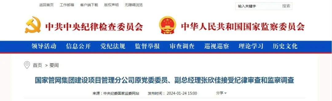 中央紀委國家監(jiān)委網站1月24日,據國家管網集團紀檢監(jiān)察組、遼寧省紀委監(jiān)委消息:國家管網集團建設項目管理分公司原黨委委員、副總經理張欣佳涉嫌嚴重違紀違法,目前正接受國家管網集團紀檢監(jiān)察組和遼寧省錦州市監(jiān)委紀律審查和監(jiān)察調查。