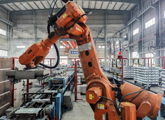 圖為中國(guó)五礦所屬株冶新材鑄造鋅合金自動(dòng)化生產(chǎn)線碼錠機(jī)器人