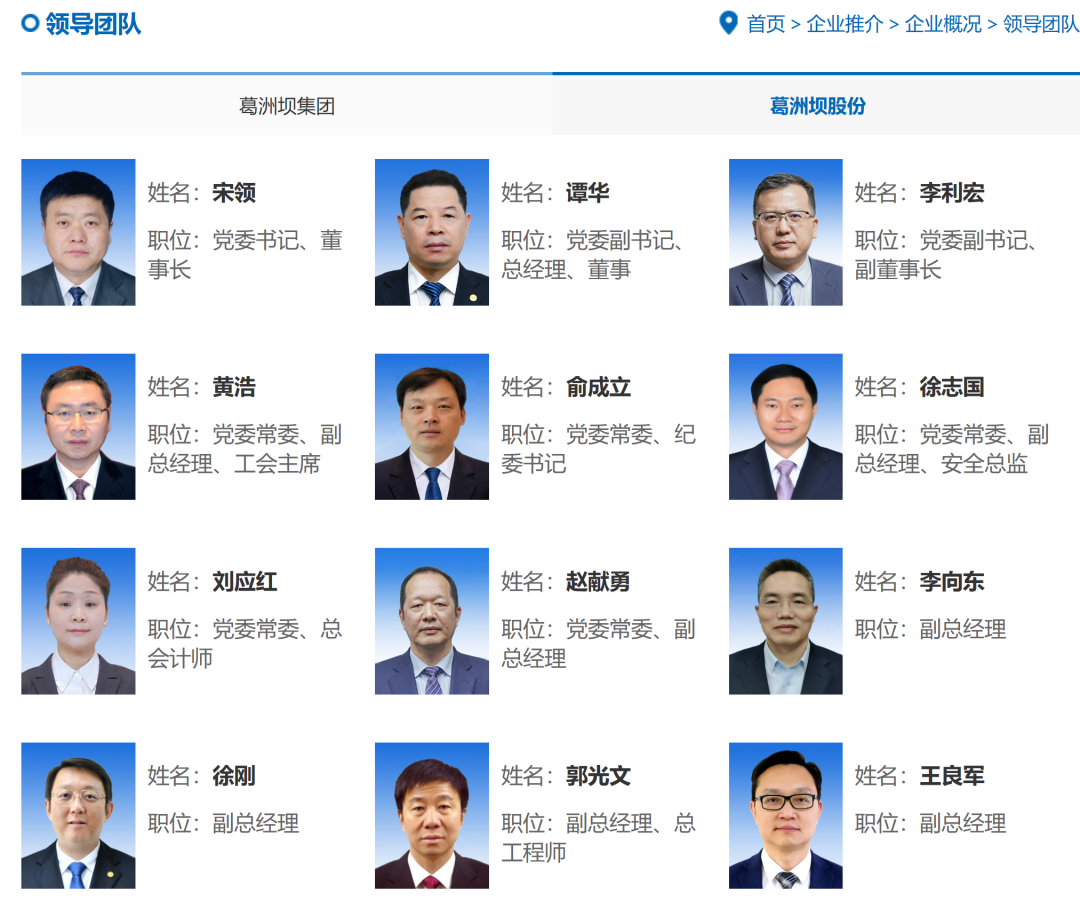 截至3月6日,中國葛洲壩集團(tuán)官網(wǎng)領(lǐng)導(dǎo)團(tuán)隊(duì)專欄顯示,葛洲壩集團(tuán)領(lǐng)導(dǎo)如下:
