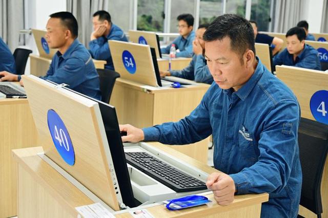 在理論考試現(xiàn)場,選手正在認(rèn)真答題。韋靜攝
