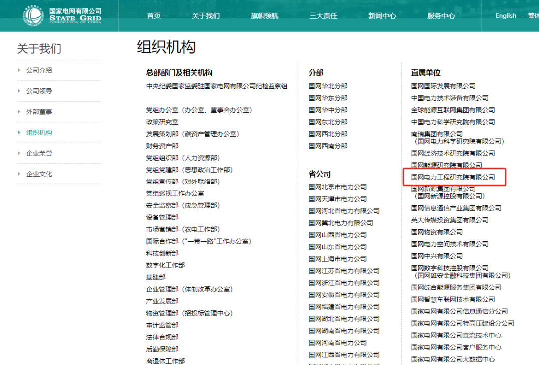 目前,國(guó)家電網(wǎng)官網(wǎng)直屬單位中已無(wú)國(guó)網(wǎng)智能電網(wǎng)研究院,并新增國(guó)網(wǎng)電力工程研究院。