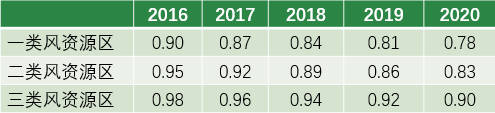 表1: 2016-2020年陸上風(fēng)電上網(wǎng)標(biāo)桿電價水平逐年下調(diào)幅度(單位:元/千瓦時)