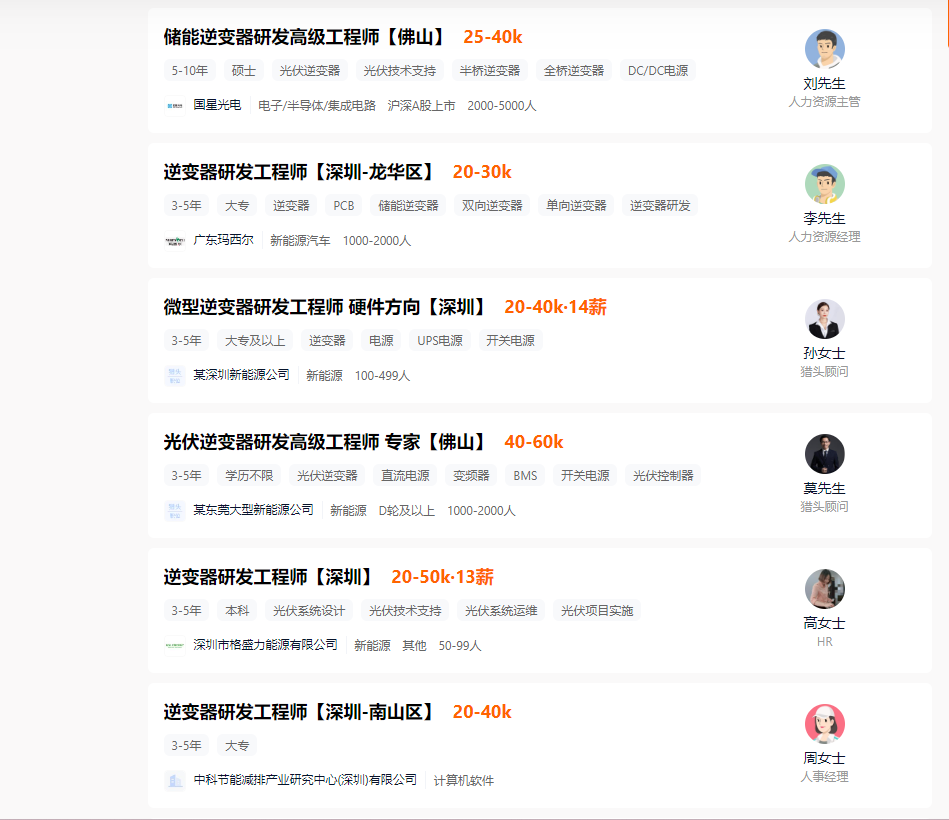 獵聘網(wǎng)招聘需求顯示,3年~5年經(jīng)驗的逆變器工程師,月薪區(qū)間普遍在2萬~4萬元
