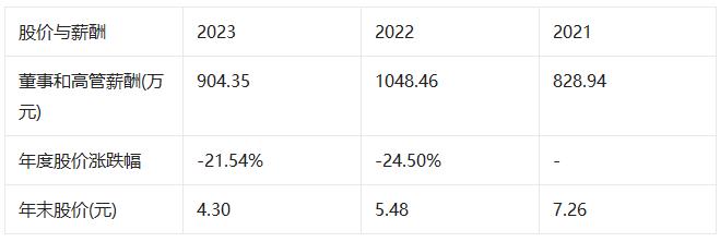 近三年董事和高級管理人員薪酬方面,2021年薪酬總額為828.94萬元,2022年薪酬總額為1048.46萬元,2023年薪酬總額為904.35萬元。從2021年到2023年,董事和高管薪酬總額增加75.41萬元,增幅9.10%。