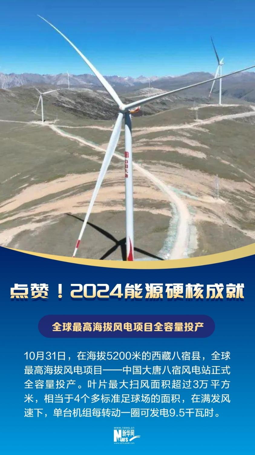 10月31日,在海拔5200米的西藏昌都市八宿縣,全球最高海拔風(fēng)電項(xiàng)目——中國大唐八宿風(fēng)電站正式全容量投產(chǎn)。項(xiàng)目共安裝20臺風(fēng)電機(jī)組,風(fēng)機(jī)輪轂中心高度110米,葉輪直徑195米,葉片最大掃風(fēng)面積超過3萬平方米,相當(dāng)于4個(gè)多標(biāo)準(zhǔn)足球場的面積,在滿發(fā)風(fēng)速下,單臺機(jī)組每轉(zhuǎn)動(dòng)一圈可發(fā)電9.5千瓦時(shí)。