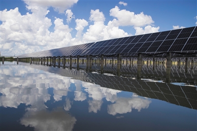 大慶油田星火水面光伏示范工程現(xiàn)場(chǎng)。