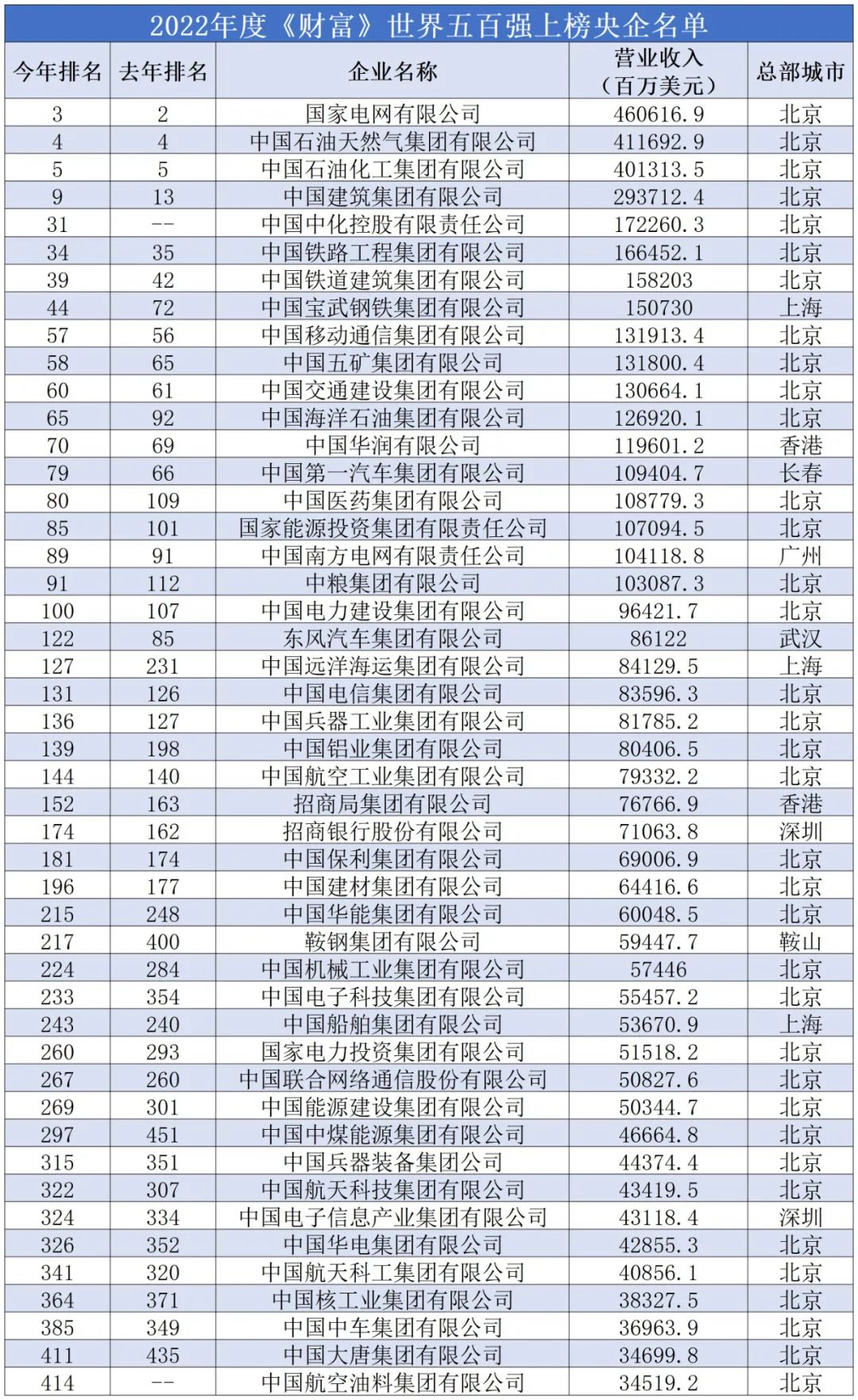 財富500強榜單中央企銷售額排名以及和去年排名對比如下圖。