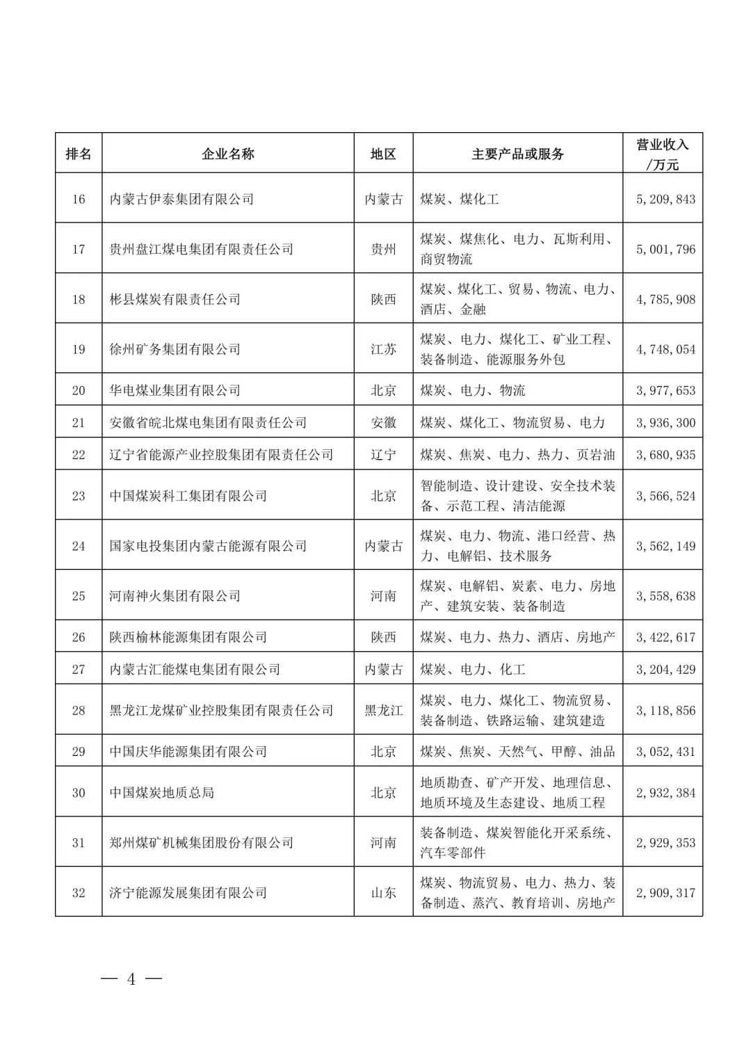 8月5日,中國(guó)煤炭工業(yè)協(xié)會(huì)發(fā)布2022中國(guó)煤炭企業(yè)50強(qiáng)和煤炭產(chǎn)量千萬(wàn)噸以上企業(yè)名單。排名先后依據(jù)營(yíng)業(yè)收入而非煤炭產(chǎn)量。