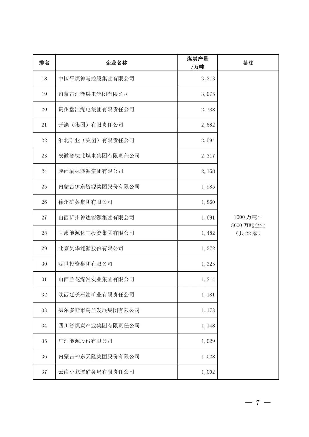 煤炭產(chǎn)量千萬(wàn)噸以上企業(yè)達(dá)到37家,比上年度增加1家。