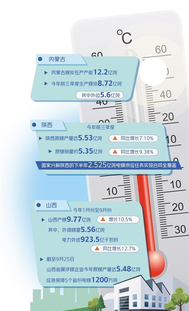 陜西能源生產(chǎn)保持穩(wěn)定、供應(yīng)安全可靠。今年前三季度,陜西省原煤產(chǎn)量達(dá)5.53億噸,同比增長(zhǎng)7.10%;原煤銷量約5.35億噸,同比增長(zhǎng)9.38%。陜西省下半年約3310萬噸電煤需求量已足額簽訂,國家分解陜西的下半年2.525億噸電煤供應(yīng)任務(wù)實(shí)現(xiàn)合同全覆蓋。