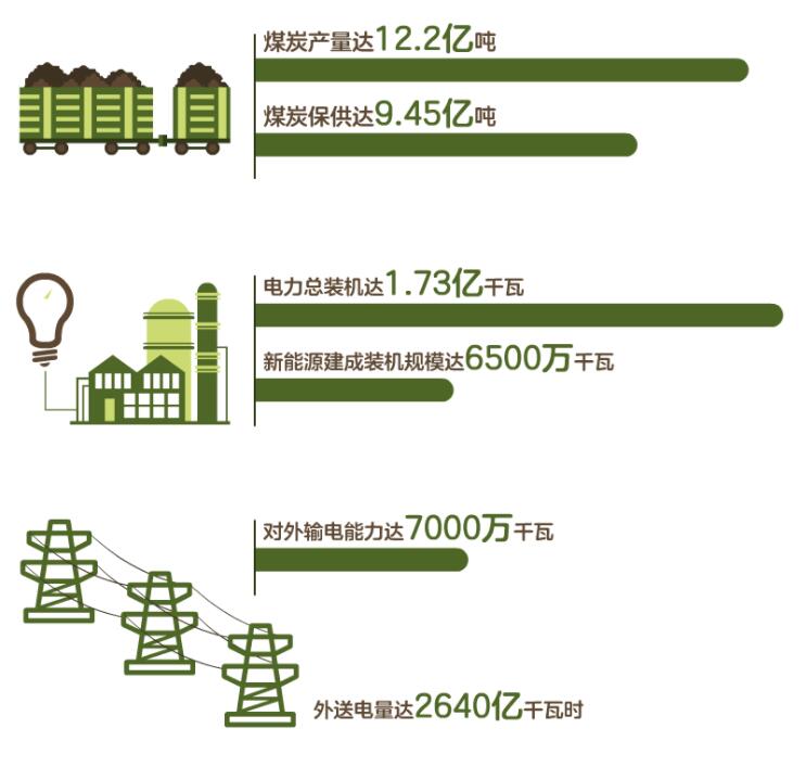 2022年,內(nèi)蒙古自治區(qū)能源經(jīng)濟多項指標(biāo)在全國保持領(lǐng)先——煤炭產(chǎn)量達(dá)到12.2億噸,電力總裝機達(dá)到1.73億千瓦,新能源建成裝機規(guī)模達(dá)到6500萬千瓦,煤炭保供達(dá)到9.45億噸,外送電量達(dá)到2640億千瓦時,對外輸電能力達(dá)7000萬千瓦。