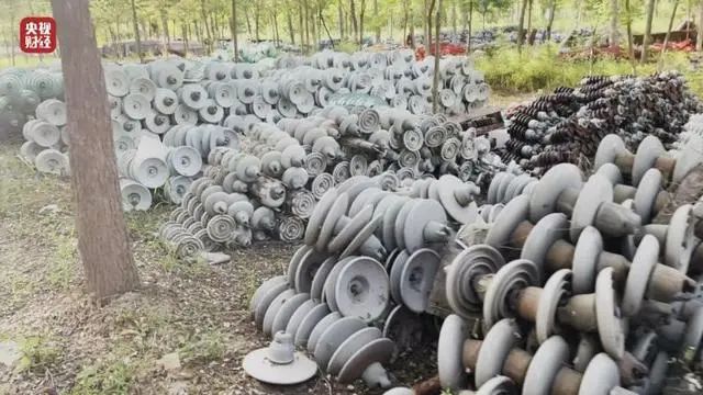 絕緣子是電力線路安全運(yùn)營的重要保障之一,起著非常關(guān)鍵的絕緣作用。在河北河間市西舊館村,樹林里道路兩旁堆放著一堆堆絕緣子,金屬表面有明顯被腐蝕的痕跡,有的甚至銹跡斑斑。