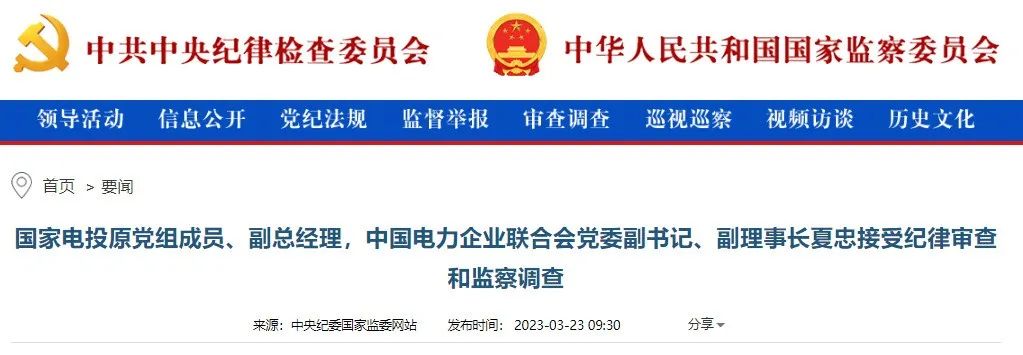 國(guó)家電投原副總經(jīng)理、中國(guó)電力企業(yè)聯(lián)合會(huì)副理事長(zhǎng)夏忠被查