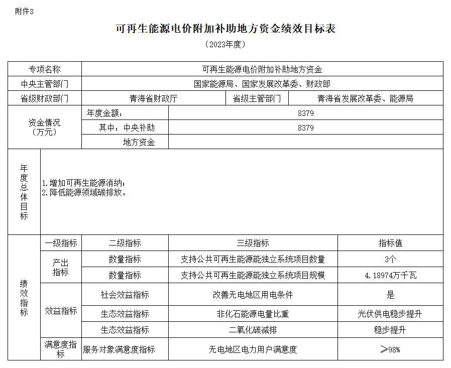 3.可再生能源電價附加補助地方資金績效目標表