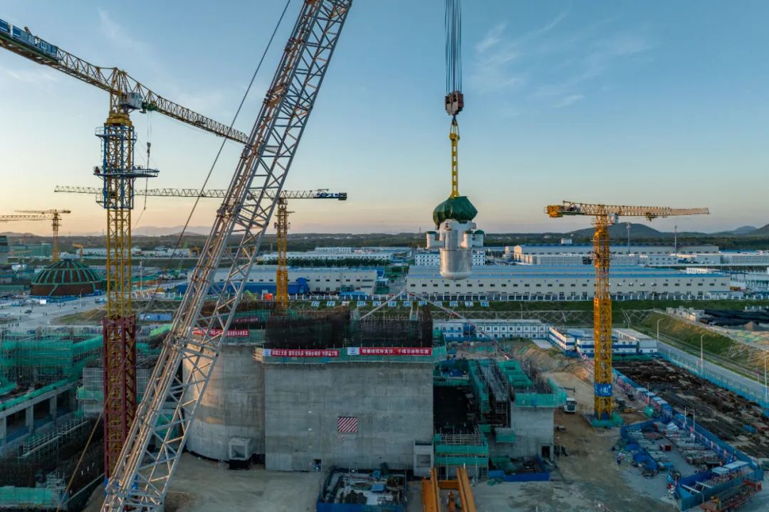 8月10日,現(xiàn)場一聲令下,中核集團旗下中國核電投資控股中核海南多用途模塊式小型堆科技示范工程玲龍一號反應(yīng)堆核心模塊被高高吊起,向著核島方向移動。吊裝成功!壓力容器、蒸發(fā)器等關(guān)鍵設(shè)備一步到位,玲龍一號全球首堆的安裝工作步入高峰期。