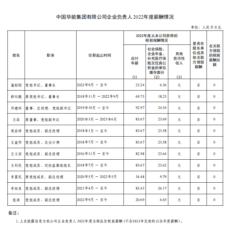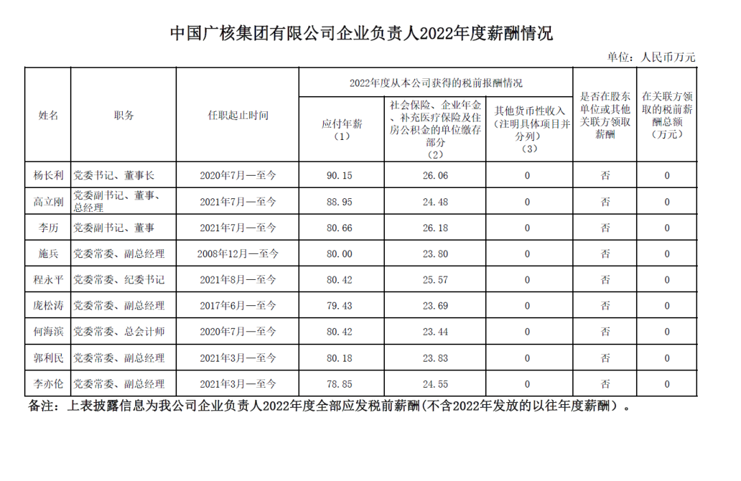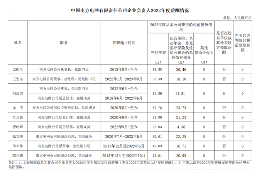 近日,南方電網(wǎng)、中國(guó)華能、大唐集團(tuán)、國(guó)家電投、中廣核、三峽集團(tuán)、中核集團(tuán)等電力央企披露負(fù)責(zé)人2022年度薪酬情況。(2021年度各大電力央企薪酬請(qǐng)查看下方鏈接)