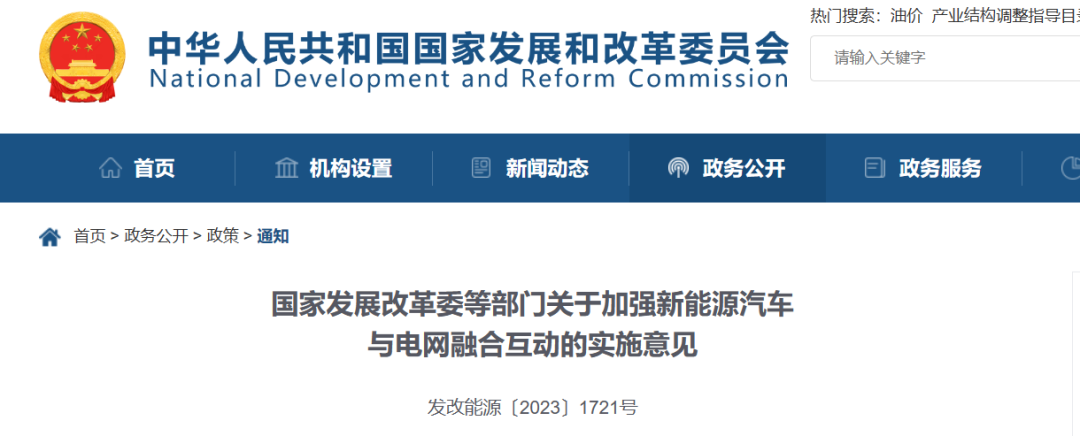 國家發(fā)展改革委等部門關(guān)于加強(qiáng)新能源汽車與電網(wǎng)融合互動的實施意見