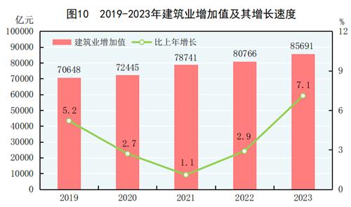 全年建筑業(yè)增加值85691億元,比上年增長(zhǎng)7.1%。全國(guó)具有資質(zhì)等級(jí)的總承包和專業(yè)承包建筑業(yè)企業(yè)利潤(rùn)8326億元,比上年增長(zhǎng)0.2%,其中國(guó)有控股企業(yè)4019億元,增長(zhǎng)4.3%。