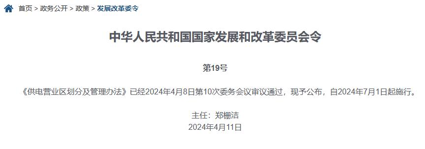 國(guó)家發(fā)展改革委印發(fā)《供電營(yíng)業(yè)區(qū)劃分及管理辦法》