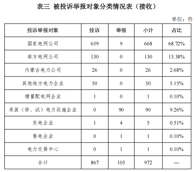 2024年11月,國家能源局12398能源監(jiān)管熱線(以下簡稱12398熱線)共接收投訴舉報972件,辦結(jié)投訴舉報799件(含往期結(jié)轉(zhuǎn))?,F(xiàn)將有關(guān)情況通報如下: