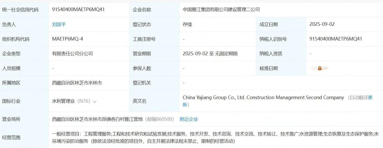 新央企中國(guó)雅江集團(tuán)設(shè)立兩公司
