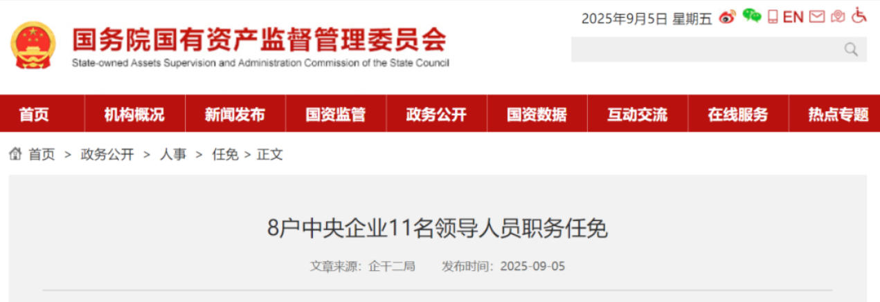 據(jù)國資委網(wǎng)站9月5日消息,免去王斌的中國電力建設(shè)集團有限公司黨委副書記、黨委常委、董事職務(wù),不再擔任中國電力建設(shè)集團有限公司總經(jīng)理職務(wù),退休。