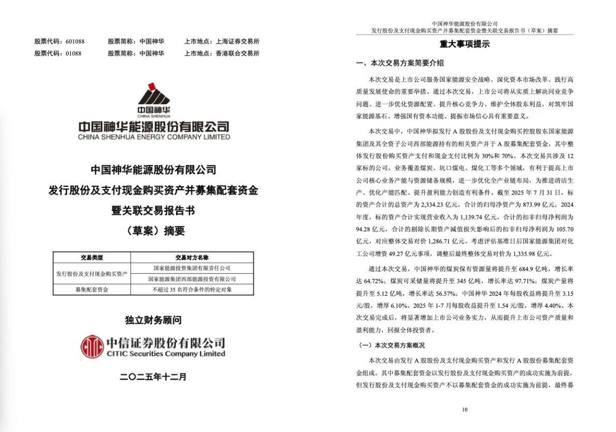 中國(guó)神華表示,通過本次交易,將從實(shí)質(zhì)上解決同業(yè)競(jìng)爭(zhēng)問題、進(jìn)一步優(yōu)化資源配置、提升核心競(jìng)爭(zhēng)力、維護(hù)全體股東利益,對(duì)筑牢國(guó)家能源基石、增強(qiáng)國(guó)有資本功能、提振市場(chǎng)信心具有重要意義。
