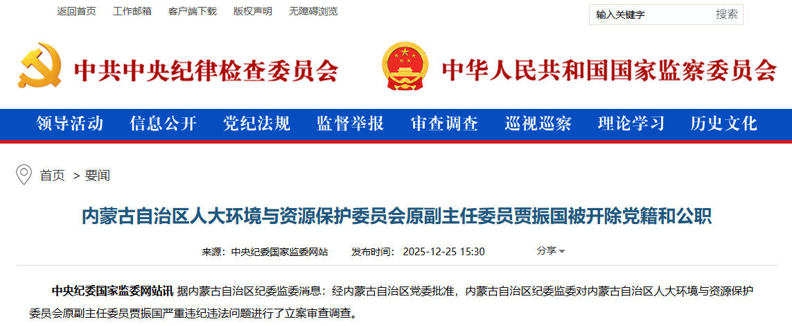 2025年12月,賈振國嚴(yán)重違紀(jì)違法被開除黨籍和公職。