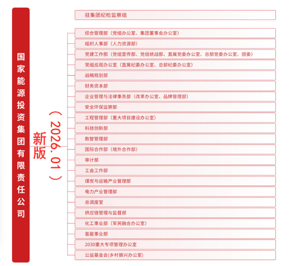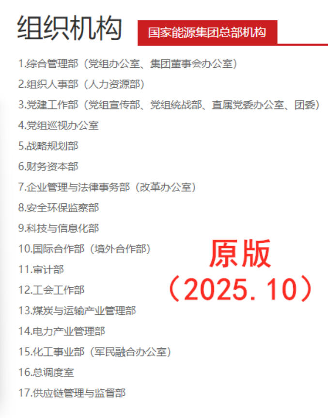 日前,國家能源集團官網改版并更新“組織架構”信息。