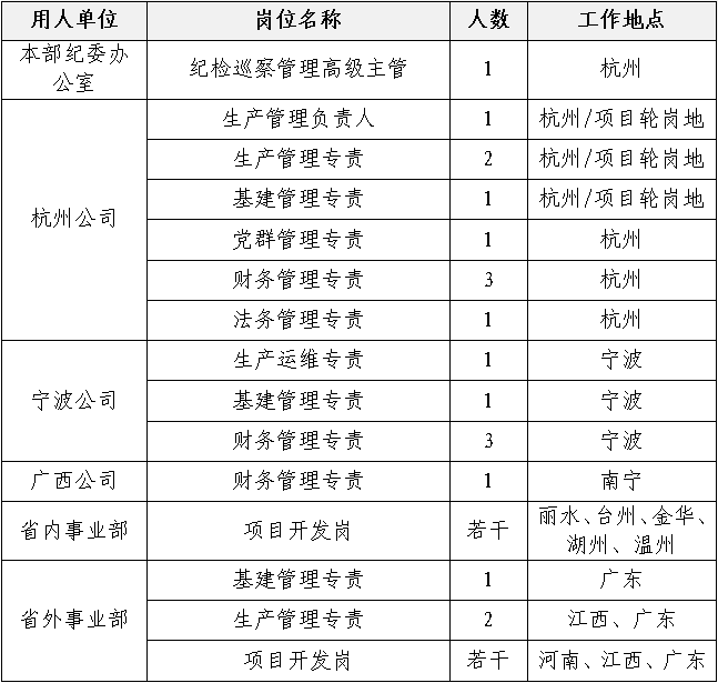 根據(jù)公司發(fā)展需要,浙江分公司本部及其所屬單位,杭州公司、寧波公司、廣西公司、各事業(yè)部現(xiàn)面向社會公開招聘相關(guān)人員,具體事項公告如下: