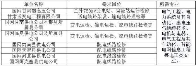 注意:如需應(yīng)聘表格以外國網(wǎng)甘肅電力其他各層級(jí)單位的畢業(yè)生,可繼續(xù)關(guān)注國網(wǎng)第一批統(tǒng)一招聘筆試公告