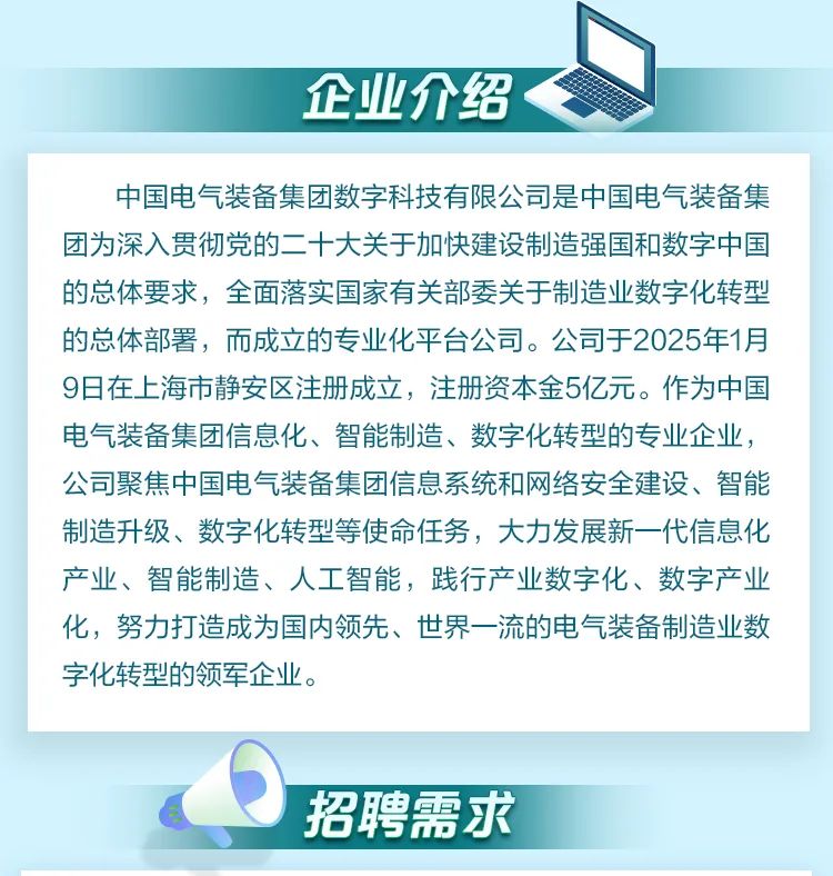 中國電氣裝備集團(tuán)數(shù)字科技有限公司招聘公告