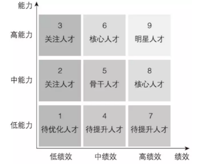 無論個人還是組織,提升能力的終極目標(biāo)都是為了超越自我,實現(xiàn)目標(biāo),因此高能力一定要轉(zhuǎn)化為高績效。每年我們都會做人才盤點(diǎn),其作用之一就是要識別出不同能力和績效表現(xiàn)的同事。下圖九宮格是人才盤點(diǎn)所使用的工具之一,其中9號區(qū)域的就是人見人愛又省心的“明星員工”。對于4號、7號區(qū)域的同事需要提升其能力,而對于2號、3號區(qū)域的同事則要特別關(guān)注,為什么他們的高能力沒有轉(zhuǎn)化為高績效?是人崗配置不合適嗎?是組織流程阻礙了個人價值發(fā)揮嗎?還是沒有點(diǎn)燃他們內(nèi)心的工作激情?