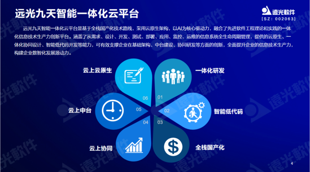遠光九天云平臺是基于全棧國產(chǎn)化技術路線,采用云原生架構(gòu),以AI為核心驅(qū)動力,融合了先進軟件工程理論和實踐的一體化信息技術生產(chǎn)力創(chuàng)新平臺。涵蓋了從需求、設計、開發(fā)、測試、部署、應用、監(jiān)控、運維的信息系統(tǒng)全生命周期管理,提供的云原生、一體化協(xié)同設計、智能低代碼開發(fā)等能力,可有效支撐企業(yè)在基礎架構(gòu)、中臺建設、協(xié)同研發(fā)等方面的創(chuàng)新,全面提升企業(yè)的信息技術生產(chǎn)力,構(gòu)建企業(yè)數(shù)智化發(fā)展源動力。