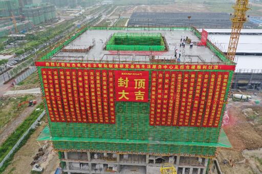 為了確保施工進度,總包方充分利用空閑時間,全員加班加點,在確保質(zhì)量的同時與時間賽跑,最終如期完成生活服務中心及綜合樓中--九層辦公樓的土建工作,并于7月9日9時9分舉行了封頂儀式。