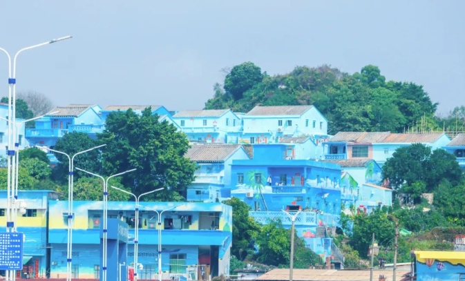 明朝期間,廣東省臺(tái)山市曾是“海上絲綢之路”的重要節(jié)點(diǎn)。中交四航局承建的臺(tái)山市海洋牧場(chǎng)廣海漁旅融合項(xiàng)目包括外立面修復(fù)、漁村升級(jí)等子工程,量身定制的海浪、椰樹等墻繪充分展現(xiàn)漁村的獨(dú)特風(fēng)貌,奠定了漁旅融合發(fā)展的底蘊(yùn),這片“藍(lán)色海洋”吸引眾多游客前來打卡,盡顯濱海旅游之美。