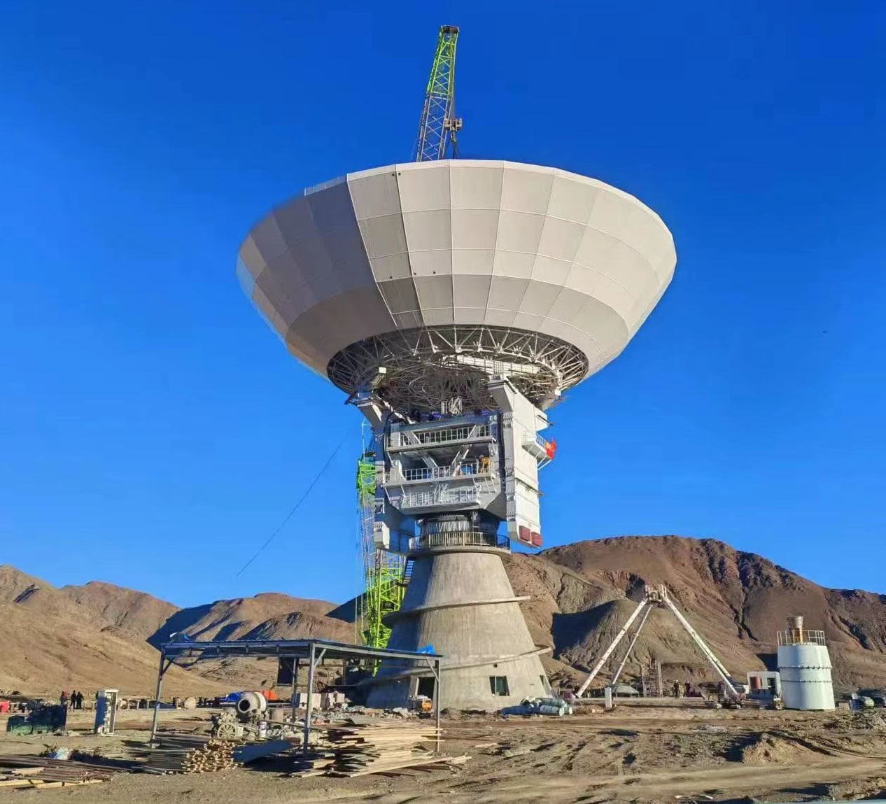 近日,由中國電科與中國科學(xué)院上海天文臺(tái)聯(lián)合研制的日喀則40米射電望遠(yuǎn)鏡,在西藏自治區(qū)日喀則市順利完成天線系統(tǒng)主反射體的吊裝,標(biāo)志著天線機(jī)械架設(shè)初步完成,為后續(xù)望遠(yuǎn)鏡電氣調(diào)試等聯(lián)調(diào)奠定堅(jiān)實(shí)基礎(chǔ)。