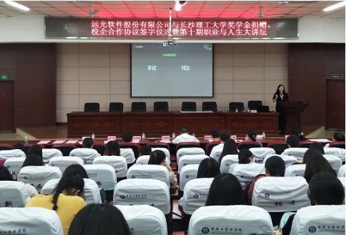 深化校企合作,引進(jìn)優(yōu)質(zhì)人才。5月29日,遠(yuǎn)光軟件與長(zhǎng)沙理工大學(xué)獎(jiǎng)學(xué)金捐贈(zèng)、校企合作協(xié)議簽字儀式暨第十期職業(yè)與人生大講壇成功舉辦。雙方簽署了校企合作協(xié)議及捐贈(zèng)協(xié)議,遠(yuǎn)光軟件向長(zhǎng)沙理工大學(xué)教育基金會(huì)捐贈(zèng)設(shè)立“遠(yuǎn)光軟件獎(jiǎng)學(xué)金”,建立全方位校企合作,共同培育高素質(zhì)應(yīng)用型人才,為實(shí)現(xiàn)企業(yè)技術(shù)創(chuàng)新與優(yōu)質(zhì)人才引進(jìn)做出新的貢獻(xiàn)。