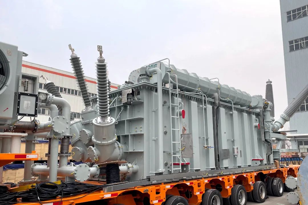 該產(chǎn)品為山東電工電氣自主研制的國際首臺自耦三相三繞組大容量220千伏車載式移動變壓器。創(chuàng)新性提出了“油-六氟化硫套管”+“六氟化硫氣體連接筒”+“旋轉(zhuǎn)套管”的220千伏高壓引線出線結(jié)構(gòu)型式,在變壓器上首次采用220千伏旋轉(zhuǎn)套管,實現(xiàn)運輸時旋轉(zhuǎn)收起,送電運行時旋轉(zhuǎn)拉開角度。創(chuàng)新提出了2組風(fēng)冷器側(cè)躺、背靠背布置的散熱結(jié)構(gòu)方案,大幅提升運輸車天鵝頸平臺空間利用率。產(chǎn)品結(jié)構(gòu)緊湊,布置合理,適用于大型臨時活動保電、大型項目建設(shè)供電、應(yīng)對自然災(zāi)害快速恢復(fù)供電等場景。