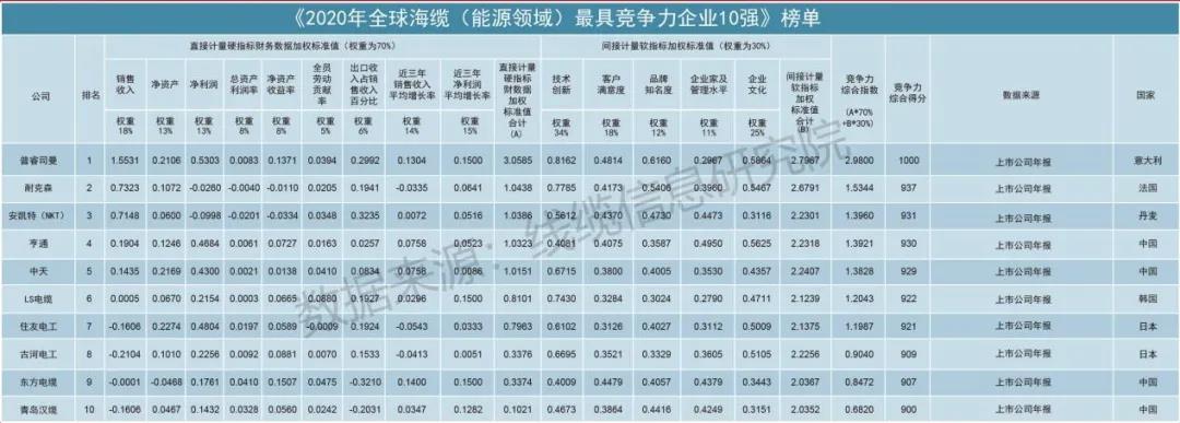 全球海纜(能源領(lǐng)域)最具競爭力企業(yè)10強(qiáng)榜單第四位