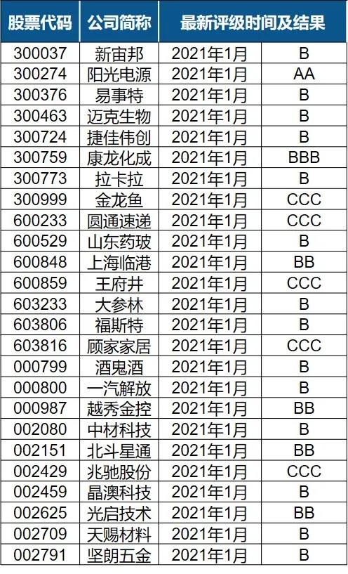 表:A股最新ESG評(píng)級(jí)調(diào)整結(jié)果