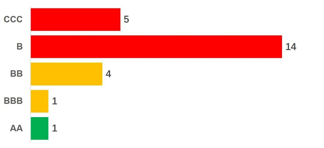 - 在評(píng)級(jí)保持不變的7家公司中,有4家仍然處于行業(yè)落后位置(3家B級(jí)、1家CCC級(jí)),有3家處于行業(yè)平均位置(2家BBB級(jí)、1家BB級(jí))。